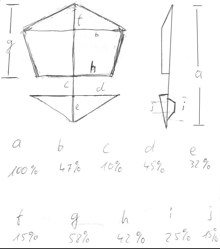 I have the "percent plan" which gives the dimensions of the kite depending on the keel length and a "ready" plan which shows a kite with 1 m keel length and the calculated lengths of all other dimensions.